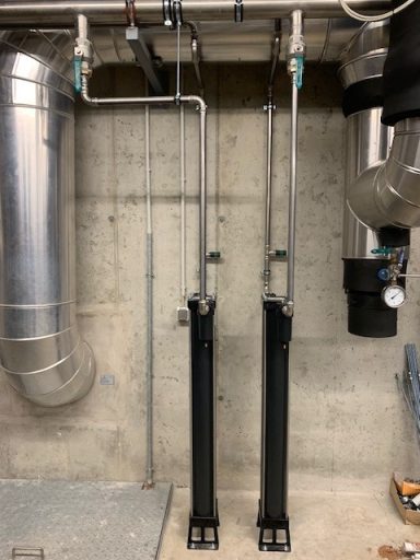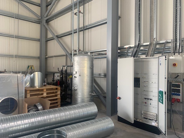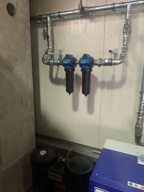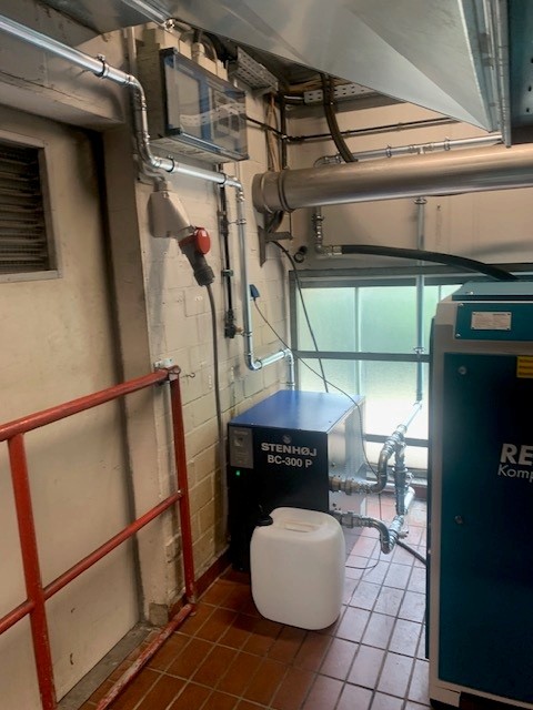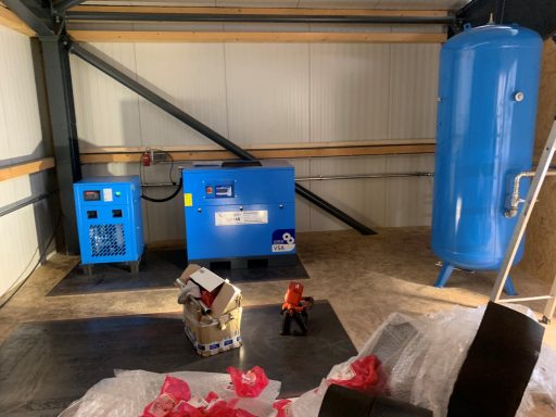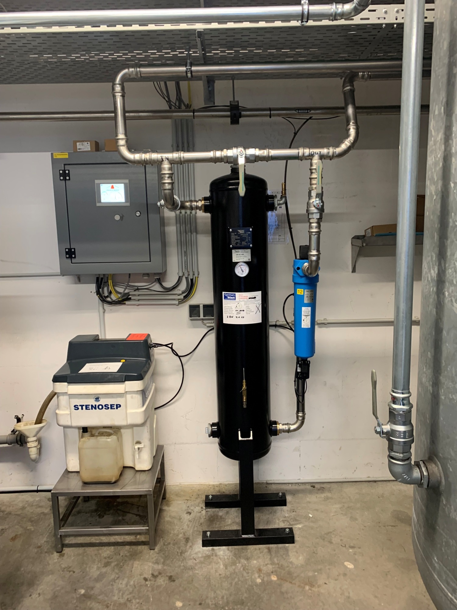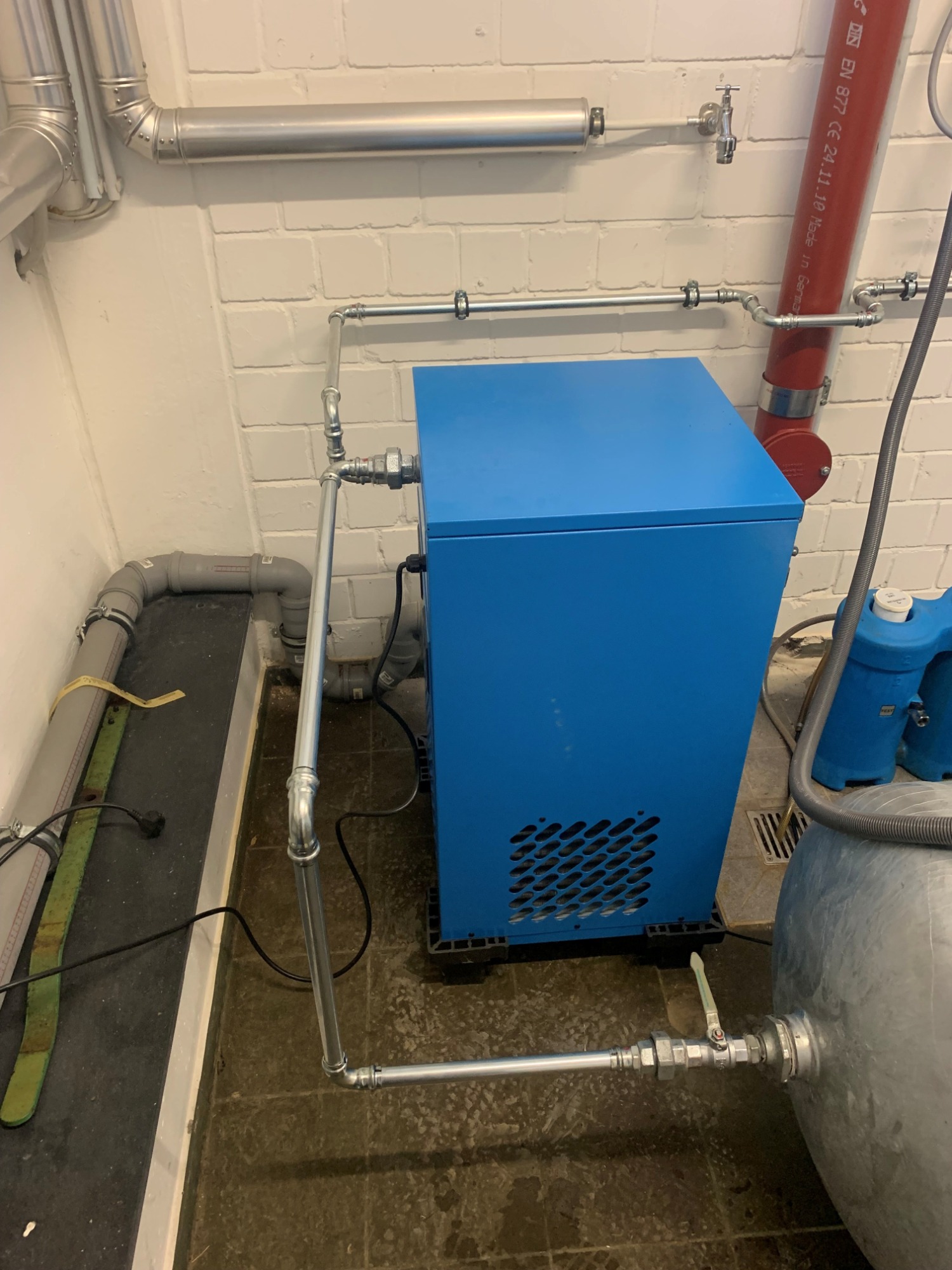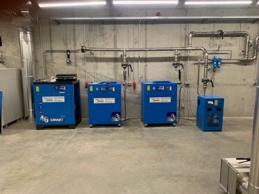 Nutzfahrzeugtechnik Köpsell Neumünster Komplett Anlage mit 2 Schraubenkompressoren, Kältetrockner, stehendem Behälter und Rohrleitung