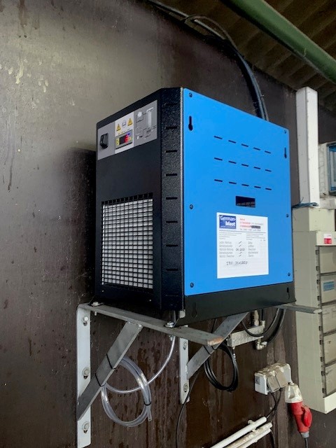 B.C.. Yachtbeschläge Großenwiehe Schraubenkompressoranlage, Kältetrockner und 270L Behälter stehend, lackiert, AD2000