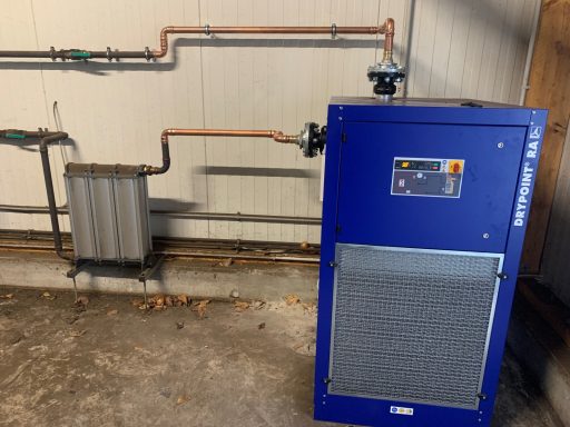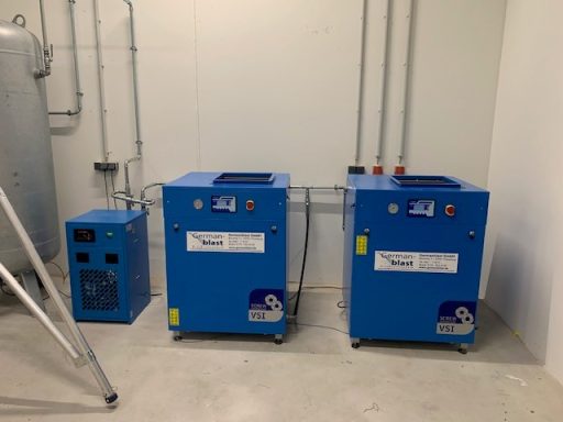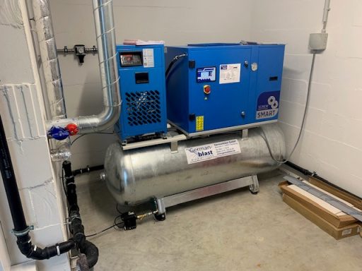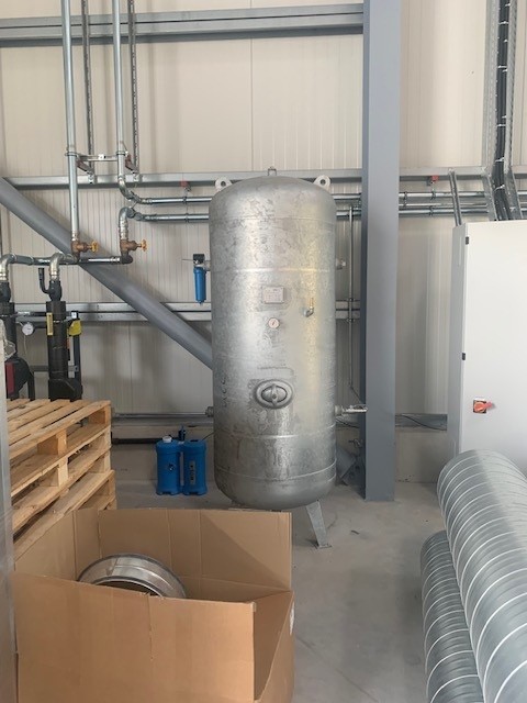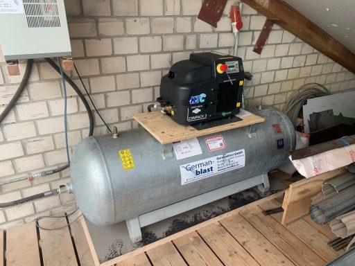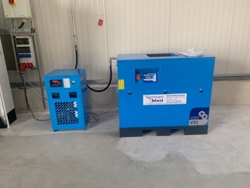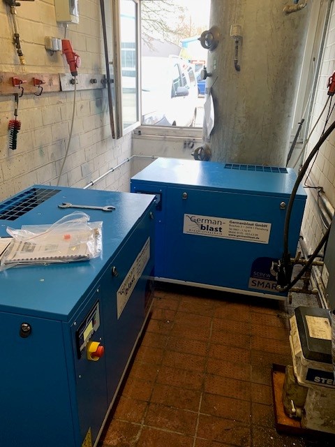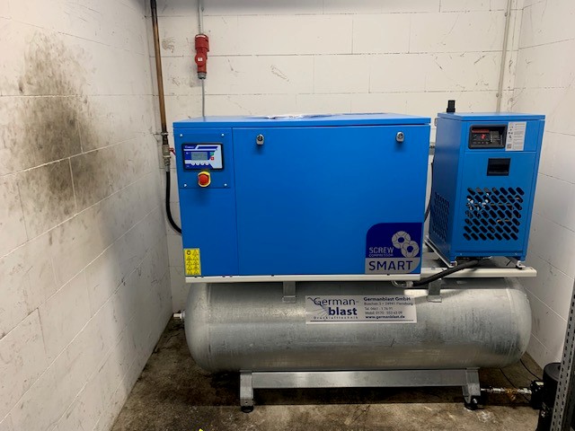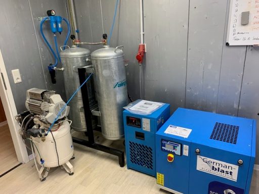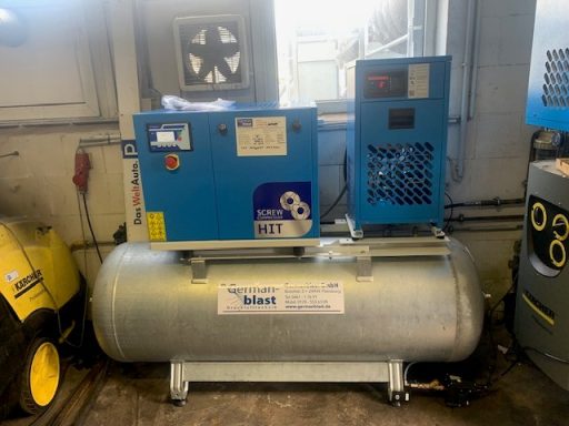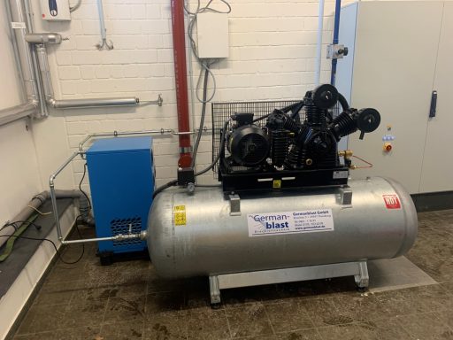 BWDLZ Julius-Leber-Kaserne Husum Kolbenkompressor auf verzinktem 270l Behälter, liegend, AD2000 und Kältetrockner von Germanblast.